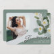 Une carte de faire-part de graduation photo personnalisée, avec des éléments de design d'élégant script de style manuscrit avec du texte moderne. La photo des diplômés est rehaussée par de belles fleurs blanches et jaunes sur un arrière - plan vert sage élégant. Le verso de la carte offre des espaces de texte personnalisés pour des informations sur la graduation et le futur voyage. Vous pouvez facilement customiser les couleurs primaires et textuelles au dos de la carte pour répondre à vos besoins. Pour voir d'autres articles comme celui-ci, visitez mon magasin ici à "www.Zazzle.com/LakeViewCardCo". Merci