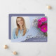 Une carte de faire-part de graduation photo personnalisée, avec des éléments de design d'élégant script de style manuscrit avec du texte moderne. La photo des diplômés est rehaussée par de belles fleurs roses et blanches dans des tons bleu poussiéreux. Le verso de la carte offre des espaces de texte personnalisés pour des informations sur la graduation et le futur voyage. Vous pouvez facilement customiser les couleurs primaires et textuelles au dos de la carte pour répondre à vos besoins. Pour voir d'autres articles comme celui-ci, visitez mon magasin ici à "www.Zazzle.com/LakeViewCardCo". Merci