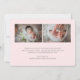 Carte faire-part de naissance photo avec un design simple avec une image horizontale à fond saigné sur le devant avec le nom du bébé dans un script élégant avec des swashes et ses statistiques de naissance en dessous. Le dos est rose vif avec deux photos horizontales et votre message personnalisé. Cette carte faire-part de naissance élégante est une excellente façon d'annoncer l'arrivée de votre nouveau-né fille.