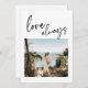 Élégant script Amour Toujours moderne et minimaliste invitation Faire-part photo Mariage invitation. Ce modèle présente votre photo de couple avec l'élégante calligraphie 'Love Always' en haut. Customisez vos coordonnées de mariage au verso, avec vos noms en calligraphie.