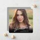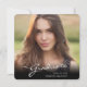 Une carte de faire-part de graduation carré personnalisée, avec des éléments de design de texte moderne fusionnés avec un script de calligraphie élégant. La photo des diplômés met en évidence l'avant de la carte tandis que l'arrière de la carte offre des espaces de texte personnalisés pour des informations sur la graduation et le futur voyage. Les Arrière - plans sont en tendance dégradé foncé sur l'avant et gris argenté sur le dos ou customisent facilement le dos de la carte à une couleur de votre choix. Pour voir d'autres articles comme celui-ci, visitez mon magasin ici à "www.Zazzle.com/LakeViewCardCo". Merci