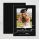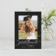Budget Black Elegant Script Photo Graduation Faire-part dispose d'un script magnifique et élégant, avec les détails de votre fête, et votre photo complète au dos.