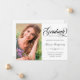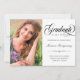 Annoncez votre diplôme universitaire à votre famille et à vos amis en style avec cette carte de faire-part photo calligraphie personnalisée. Ce modèle design de typographie moderne présente votre photo sur la gauche et à droite élégante typographie de script noir qui dit "Graduate Class of 20XX" avec votre nom, les honneurs, l'école et la date pour personnaliser décoré avec un délicat séparateur rose floral. Félicitations pour votre diplôme ! Conçu par Susan Coffey.