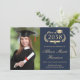 Faire-part moderne de diplôme de l'université bleu foncé avec "Classe de" dans une illustration en or clair d'une couronne de laurier incorporant un haut casquette et un diplôme, une photo du diplômé et leur nom dans un élégant script en or clair. Ajoutez leur école, leur majeure, leurs distinctions honorifiques ou leurs plans d'avenir. Au verso, ajoutez 3 photos supplémentaires et votre message personnalisé.