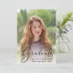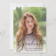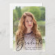 Annoncez les réalisations de votre diplômé avec cet élégant faire-part de diplôme. Sa photo préférée remplit la carte de superposition "Graduate" dans un script élégant. Ajoutez son nom, son école et son année de classe.