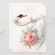 This elegant illustration features a graceful white swan adorned with a delicate bouquet of soft pink roses, symbolizing love, beauty, and timeless romance.