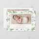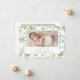 Faire-part de naissance photo élégant et fantaisiste avec aquarelle motif d'eucalyptus et autres feuillages. Ce faire-part de naissance photo verdoyant est parfait pour les annonces de naissance de bébé sans sexe.