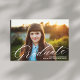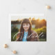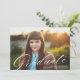Ce faire-part de graduation présente une photo pleine image et élégante calligraphie "graduée" en blanc. Ce design classique mais moderne permet vraiment à votre photo de briller en gardant les détails minimes, tandis que l'accueil donne le ton heureux. Conseil : vous pouvez facilement ajouter du texte ou une photo supplémentaire au dos en supprimant le dossier motif optionnel.