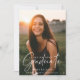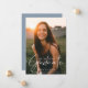 Élégante typographie, superposition photo en écriture blanche, faire-part de graduation photo. La couleur Arrière - plan affichée en bleu poussiéreux peut être customisée.