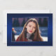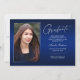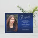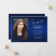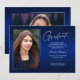 Double face, deux cartes photo modernes et élégantes de faire-part de graduation, avec des éléments de design de texte moderne avec un script manuscrit unique. Les photos du diplômé sur l'avant et l'arrière de la carte sont accentuées par une planche à dégradé délicat et minimaliste (La photo arrière est parfaitement réglée et prête à être encadrée). L'arrière - plan est un dégradé spécial, créant de belles nuances de bleu éclatant allant du saphir au bleu marine profond. Le recto de la carte offre des espaces de texte personnalisés pour des informations sur votre graduation ou peut être reformulé pour faire de cette carte une grande invitation à la fête. Idéal pour les étudiants du secondaire, collégial et universitaire.