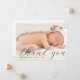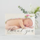 Créez votre nouveau faire-part de naissance bébé ou baby shower merci carte photo à remercier vos amis et votre famille pour l'accueil de votre petit! Le design élégant et minimaliste comprend une photo complète de votre petite et élégante typographie ci-dessous avec votre message "Merci" dans un script chic lettré et les informations de votre bébé dans la typographie classique. Le texte est noir, donc il fonctionnera mieux avec une image légère. Au dos, il y a un message personnalisable avec vos noms. Rendez-le unique en remplaçant le texte et l'image en cliquant sur le bouton "Personnaliser".