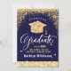 Elégante Calligraphie Gold Parties scintillant Sparkling Graduation Card Faire-part. Célébrez votre fête de remise de diplômes avec cette élégante et festive parties scintillant d'or scintillante de style luxueux carte d'invitation avec belle calligraphie manuscrite. Tous les textes sont pré-arrangés pour que vous personnalisiez facilement et rapidement avec vos propres détails.