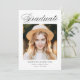 Élégant faire-part de graduation avec "Graduate" affiché en haut dans un script de calligraphie noir. Le dessin présente la photo du diplômé avec le nom du diplômé, le nom de l'école et l'année de fin d'études, comme indiqué ci-dessous. La faire-part de graduation de la photo s'inverse pour afficher du texte facultatif comme les plans futurs, les détails de la fête de remise de diplômes, etc. Le faire-part chic de graduation est parfait pour annoncer la graduation des diplômés du secondaire et du collège.