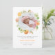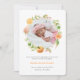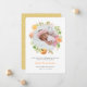 Elégante carte de modèle floral aquarelle avec illustrations florales d'agrumes oranges, lavande rose et feuillage de feuilles vertes à l'avant. L'arrière révèle un arrière - plan à pois jaunes. Sur le devant, une photo de votre nouveau-né qui peut être ajoutée sur cette carte. Utilisez une image de taille carré pour un ajustement facile. La carte comporte des arêtes rondes. Carte parfaite pour annoncer l'arrivée de votre nouveau bébé avec ses statistiques de naissance. Idéal pour le bébé garçon et la fille. Parfait pour les saisons d'été et de printemps !