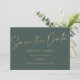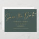 Élégant script de feuille d'or faux foncé mariage vert foncé enregistrer la date avec une calligraphie script décontracté et cool.