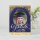 Elégante Parties scintillant d'or Sparkling Photo Graduation Card Faire-part. Célébrez votre fête de remise de diplômes avec cette élégante et festive parties scintillant d'or scintillante de style luxueux carte d'invitation avec belle calligraphie manuscrite. Tous les textes sont pré-arrangés pour que vous personnalisiez facilement et rapidement avec vos propres détails.