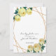 Le design est doté d'un élégant motif géométrique de parties scintillant en faux or. Revêtu de roses jaunes aquarelles et de feuillage verdoyant sur deux coins. Personnalisez ce modèle pour ajouter vos informations à l'avant et à l'arrière de la carte. Cliquez pour customiser plus loin pour apporter d'autres modifications. Tout est personnalisable. Vous avez besoin de personnalisation ou de questions, puis contactez le concepteur Sandy à l'adresse admin@giftsyoutreasure.com