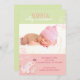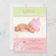 Eléphants et tourbillons roses doux + beau arrière - plan vert et rose printanier illustré sur les Cartes de Faire-part de naissance bébé personnalisées. Customisez les cartes de faire-part super fantaisie et unique avec votre propre libellé et image bébé! N'hésitez pas à modifier les tailles, les polices et les couleurs du texte. (Contactez ujean4791@gmail.com pour effectuer un travail personnalisé et/ou faire correspondre des éléments.))