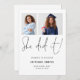 Elle L'A Fait Script 2 Photo 2022 Graduation. Style contemporain et informel pour faire connaître à tout le monde les nouvelles de votre grade. Remplacez simplement les deux exemples de photos par les vôtres et personnalisez-les avec le nom de votre diplômé, le lycée, l'année et le message au dos. Elle l'a fait dans un élégant scénario.