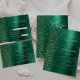 Ce mariage moderne élégant, à l'exception de la carte datation, est orné d'un arrière - plan en métal brossé vert émeraude décoré de parties scintillant en faux diamant. Le texte personnalisable combine le script blanc et les polices sans serif. L'envers reprend la conception du métal brossé vert émeraude et de la parties scintillant.