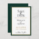 Riche émeraude foncée et bordures dorées avec une typographie élégante, carte de sauvegarde de mariage. Conçue pour correspondre à notre collection Emerald Forest.