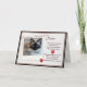 Une belle carte commémorative de perte d'animal. Annoncer la perte de votre animal de compagnie bien-aimé est une chose difficile à faire. Envoyez cette carte à vos amis et à votre famille afin qu'ils aient eux aussi un souvenir de votre compagnon de fureur. Cliquez sur "Customiser" pour modifier les styles, les couleurs ou le placement des polices. Si vous avez de la difficulté à personnaliser cette carte ou à ajuster votre photo, envoyez-moi un courriel à patcald@telus.net et je vous aiderai volontiers.