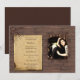 Ce faire-part d'obtention du diplôme est un grand compromis entre la beauté classique et la trouille moderne ! L'arrière - plan est fait de vieux bois de grange. L'image de votre diplômé va au côté droit avec un cadre floral brun de rouleau. À l'aile gauche est un vieux parchemin avec votre texte dans le brun foncé. Ceci fonctionne admirablement pour une photo modifiée la tonalité par sépia !