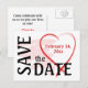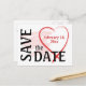 Si vous avez besoin d'un moyen rapide d'informer les gens de votre événement spécial, alors cette carte postale "enregistrer la date" est juste la chose pour vous. Les mots gras "enregistrer la date" empilés sur les bords de la carte postale en majuscules obtiennent une attention immédiate, tandis que le coeur rouge brossé ne laisse aucun doute sur l'événement. A l'intérieur du coeur est la date de votre événement, offrant une personnalisation complète en police et couleur. Le dos de la carte postale permet également une personnalisation complète avec l'ajout de noms.