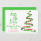 Le côté droit de cette faire-part de Noël "Save The Date" présente un arbre de Noël moderne rouge et vert avec. Le côté gauche de la carte contient les informations du modèle. La bordure avant et la carte arrière correspondent aux couleurs. Personnalisez les informations du modèle, supprimez le texte et/ou cliquez sur customiser pour sélectionner la couleur, la taille et le style de votre choix.
