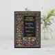 Art floral gothique vintage éditable à partir d'un manuscrit éclairé antique, fleurs colorées et feuilles défilant sur un arrière - plan noir avec des polices de caractères noires.
