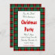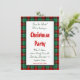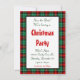 Une fête de Noël personnalisée Enregistrer le modèle de la date avec des lettres de script et un motif arrière - plan rétro de plaid rouge et vert de vacances et de la place pour vos informations de fête sur le devant en lettres de script et de neige.