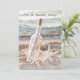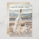 Une charmante paire d'étoiles de mer blanches nichée dans un sable de plage doux, accompagnée d'un message captivant dans une bouteille pour l'événement Save The Date. Tout le texte est modifiable.