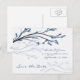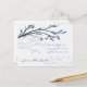 Silhouette de branche d'arbre avec des feuilles bleues et des fleurs en fleurs. Le texte est entièrement personnalisable pour votre annonce de sauvegarde de la date. Autres éléments assortis.
