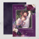 Des fleurs romantiques dans des nuances de bordeaux riche, de lilas tendre, de violet aubergine profond et d'orchidée rosâtre s'associent à des botaniques vertes modernes telles que les fougères et l'eucalyptus. Un fond d'aquarelle violet aubergine profond lie le tout avec une typographie moderne élégante dans ces cartes de sauvegarde de photo de date.