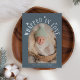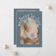 Elégante et moderne carte de thème de Noël avec un texte qui dit "enveloppé dans l'amour" avec les étoiles. C'est une carte faire-part de naissance pour les saisons de vacances ! Ajoutez vos photos, vos statistiques de naissance et un message ! L'arrière - plan est bleu ardoise.