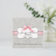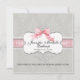 Dans une palette subtile et sophistiquée de gris tourterelle doux et de rose blush pastel, cette annonce de naissance présente des volutes et des enroulements élégants de style calligraphique en cuivre français à l'arrière-plan, des fioritures de script, un cadre en forme de parenthèse et un magnifique nœud en ruban rose peint à la main, avec une bordure en dentelle de satin à l'aspect froncé de style français. Le tout est réalisé à partir d'une œuvre d'art originale à l'aquarelle peinte à la main par Audrey Jeanne Roberts. Le résultat est un ensemble pour bébé moderne et contemporain d'une beauté exquise. Au verso, on retrouve le même motif de demesk et un cadre révélant un emplacement pour la photo de votre bébé. Vous pouvez facilement ajouter votre propre image ou modifier les messages.