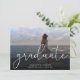 L'annonce de remise de diplômes avec un script tendance et plusieurs photos présente le diplômé avec 4 photos. L'annonce est accentuée avec une typographie blanche élégante et manuscrite avec le nom de votre diplômé et son école. Le verso de l'annonce permet votre texte personnalisé, un joli script qui dit "elle l'a fait" et 3 photos de diplômés. L'annonce moderne parfaite pour votre diplômé.