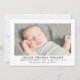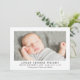 Faire et classique photo carte d'annonce de naissance comporte une photo encadrée de paysage sur un fond blanc croquant avec le nom de bébé garçon en lettrage majuscule espacé élégant et les statistiques de naissance en gris charbon. Un message de script "Parents Fières" ajoute une touche personnelle chaleureuse. Le dos est habillé dans un motif de rayure horizontale audacieux en charbon et blanc. Tout le texte et les couleurs sont entièrement personnalisables.
