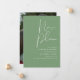 Avec toutes les restrictions de pandémie et les protocoles de sécurité, informez vos amis et vos proches de votre nouvelle date de mariage avec cette carte de faire-part moderne minimaliste disant « nouveau plan » en lettrage calligraphique et thème de couleur vert sauge. Vous pouvez également personnaliser la photo au verso.