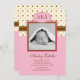 Faire-part de naissance personnalisé moderne pour une fille. Ajoutez votre propre photo et vos propres mots. Caractéristiques les monogrammes d'initiales de bébé et un fond à pois mignon en rose et marron. Élégant mais ludique.