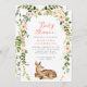 Faire-part Fête de bébé cerf à fleurs et feuillage aquarelle