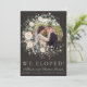 La meilleure façon d'annoncer que vous avez fui ! Ce faire-part est orné d'une magnifique couronne de verdure fleurie et de pins entourant une photo de la mariée et du marié. Veuillez me contacter si vous désirez de l'aide pour customiser ce faire-part d'évènement.