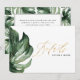 Carte de détails de mariage tropical à feuille de palmier à l'aquarelle. Un design élégant, c'est partie d'une collection de mariage moderne minimal tendance. Avec du texte de script à effet doré.