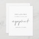 Script budgétaire Minimaliste Fiançailles Faire-part> Un prix budgétaire SMALLER 4.5" x 5.6" alternative. Disponible dans un STOCK SEMI-GLOSS 110 lb CARD qui est l'option par défaut (plus épais pour les invitations), OU un STOCK SATIN FINISH 80 lb THINNER PAPER (idéal pour les boîtiers). Un design noir et blanc simple et élégant pour annoncer vos bonnes nouvelles. Fiançailles est dans un script moderne est au centre.Le reste du texte que vous pouvez facilement personnaliser. Les couleurs du texte et de l'arrière - plan peuvent être modifiées si vous souhaitez mieux convenir à votre thème mariage via l'option customiser plus loin.