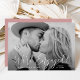 Annoncez votre fiançailles avec ces annonces élégantes de fiançailles photo! Le faire-part présente votre photo fiançailles horizontale à fond de sang avec "We're Engaged!" dans un simple script blanc. Personnalisez le devant de la faire-part avec vos noms et détails que vous souhaitez inclure. Le faire-part de fiançailles photo inverse pour afficher un arrière - plan rose solide et poussiéreux avec de l'espace pour des photos et du texte supplémentaires.