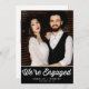Nous sommes fiancés ! Annoncez votre fiançailles à votre famille et à vos amis avec cette carte de faire-part de fiançailles photo personnalisable. Il dispose d'un script rétro et d'une typographie simple. Ce faire-part fiançailles photo classique est disponible en d'autres couleurs. Personnalisez en ajoutant vos photos, noms et autres détails.