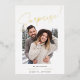 Vous n'avez pas encore fixé la date, mais vous êtes impatient de partager les bonnes nouvelles avec votre famille et vos amis ? Annoncez votre fiançailles avec ces cartes photos simples et légers, avec une photo verticale ou orientée portrait avec "surprise !" superposée en haut, en papier-feuille doré esquissé à la main. Personnalisez avec trois lignes de texte personnalisé en bas, y compris votre faire-part, les noms en feuille d'or, et une note pour rester à l'écoute pour plus de détails.