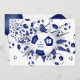Cette mignonne invitation à la fête de football avec un thème bleu, présente une "explosion" de balles de football de taille variée et des formes d'étoiles bleues et grises sur le devant et une balle de football de taille abstraite surdimensionnée sur le dos - chacun des panneaux noirs typiquement des balles de football a été recoloré bleu - customisez les détails de la fête pour convenir à votre fête - par katz_d_zynes