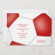 Cette mignonne invitation à la fête de football comprend une "explosion" de balles de football rouge et blanc de tailles variées et des formes d'étoiles de style comique rouge et gris sur le devant et une balle de football de taille abstraite surdimensionnée sur le dos - chacun des panneaux de football noir typiquement des balles de football a été recoloré rouge - customisez les détails de la fête pour convenir à votre célébration - par katz_d_zynes