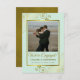 Ces magnifiques cartes d'annonce de fiançailles sont un excellent moyen de faire savoir à vos amis et à votre famille que vous allez vous marier. Le design élégant or et vert menthe néon présente votre photo dans un cadre doré en faux foil entouré de volutes et de boucles dorées ornées. Le titre indique "Nous sommes fiancés !" avec un espace pour vos noms et une courte note. Le dos est d'une couleur or marbré profond.